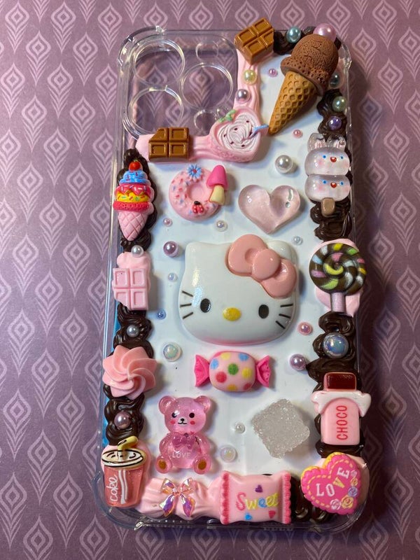 Telefoonhoesje Hello Kitty en Kuromi handmade decoden