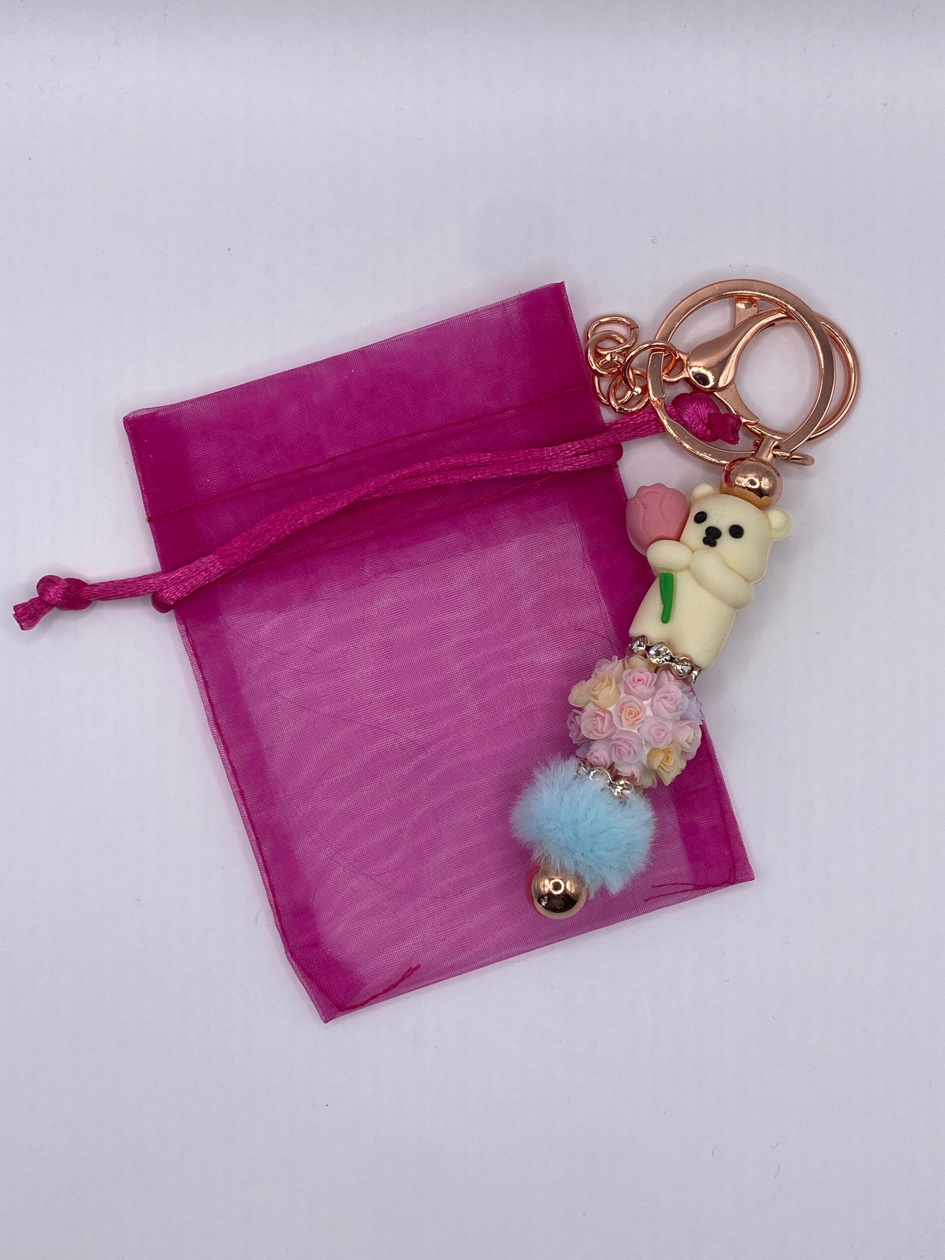 Sleutelhanger kant en klaar maar ook naar wens te maken met siliconenkralen, acrylkralen, en figuurtjes