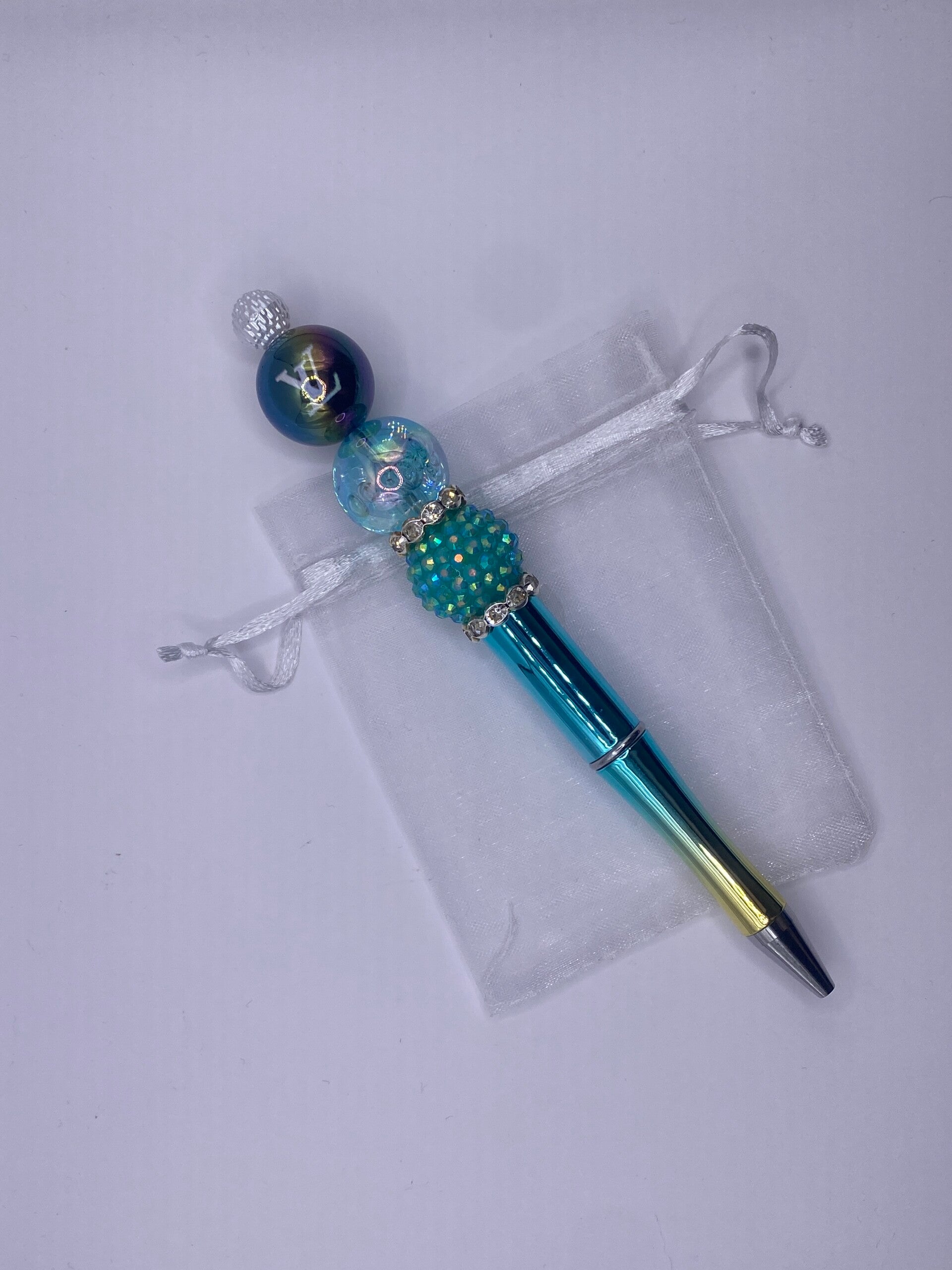 Designer pen met LV ronde olievlek kraal blauwmetallic pen