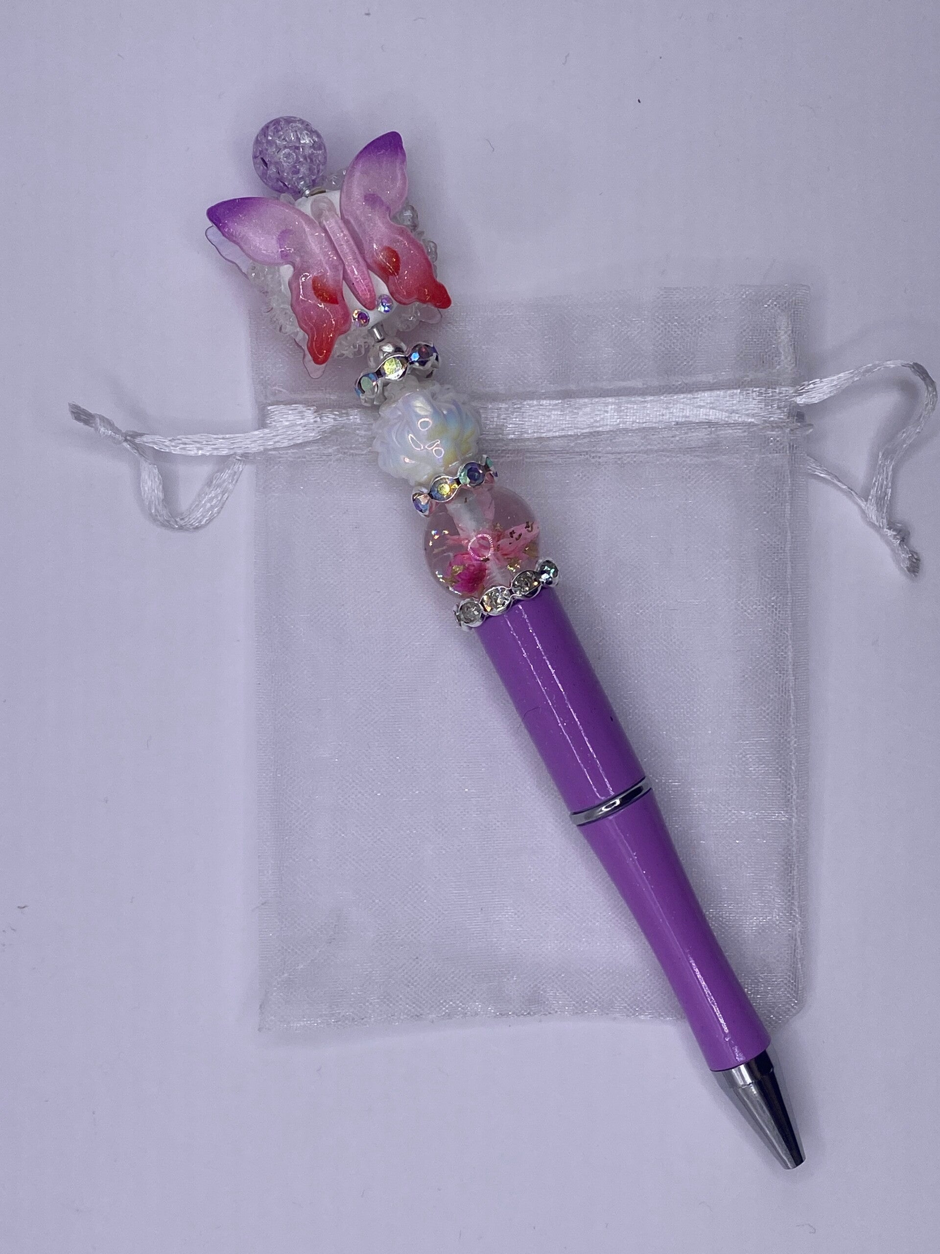 Pen paars met vlinder meerkleurig